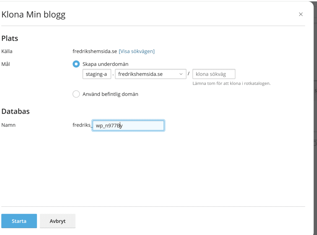 Du kan enkelt använda klonfunktionen för att skapa en stagingmiljö, där du kan testa saker innan du driftsätter ändringarna.